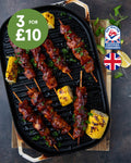 Pan / Griddle: Place each chicken skewer onto a hot griddle or into a hot pan with a little oil. Cook until a core temperature of 82°C is reached, turning as necessary.