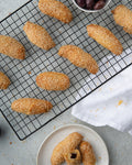 Wheat flour (gluten) Sunflower oil Orange juice, Olives 22%, Onion, Coriander, Salt, Sesame seeds, Baking powderMay contain olive stones.
