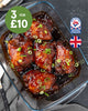 Chicken (78%), Water, Seasoning (Sugar, Salt, Corn Flour, Ground Ginger, Garlic Powder, Dehydrated Garlic, Colour [E150c], Spices, Thickening Agent [E412], Flavouring, Spice Extract), Acidity Regulator (Potassium Acetate, Potassium Diacetate), Emulsifier [E451, E450, E452], Dried Glucose Syrup, Acidity Regulator [E331], Acid [E330, E334], Stabiliser [E415], Potato Fibre, Potato Starch.
